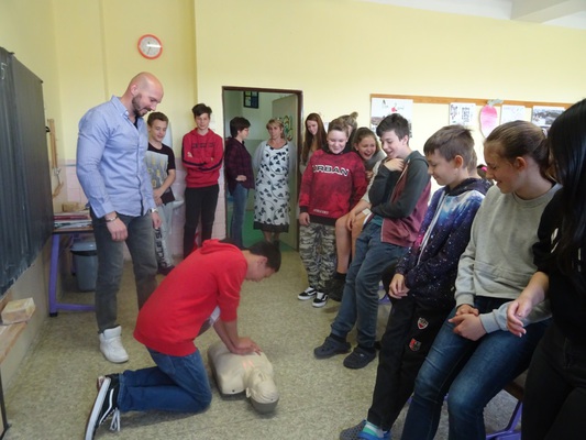 Naši školu navštívili pracovníci záchranné služby a seznámili žáky se svojí prací. děti si mohly prohlédnout vozidlo záchranné služby, poté vyplňovaly kvíz o první pomoci a na závěr si vyzkoušeli provedení nepřímé masáže srdce.