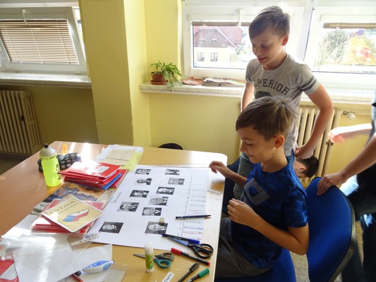 Na závěr projektového dne pak všichni žáci 2. stupně rozdělení do několika skupin vytvářeli plakáty o Československu.