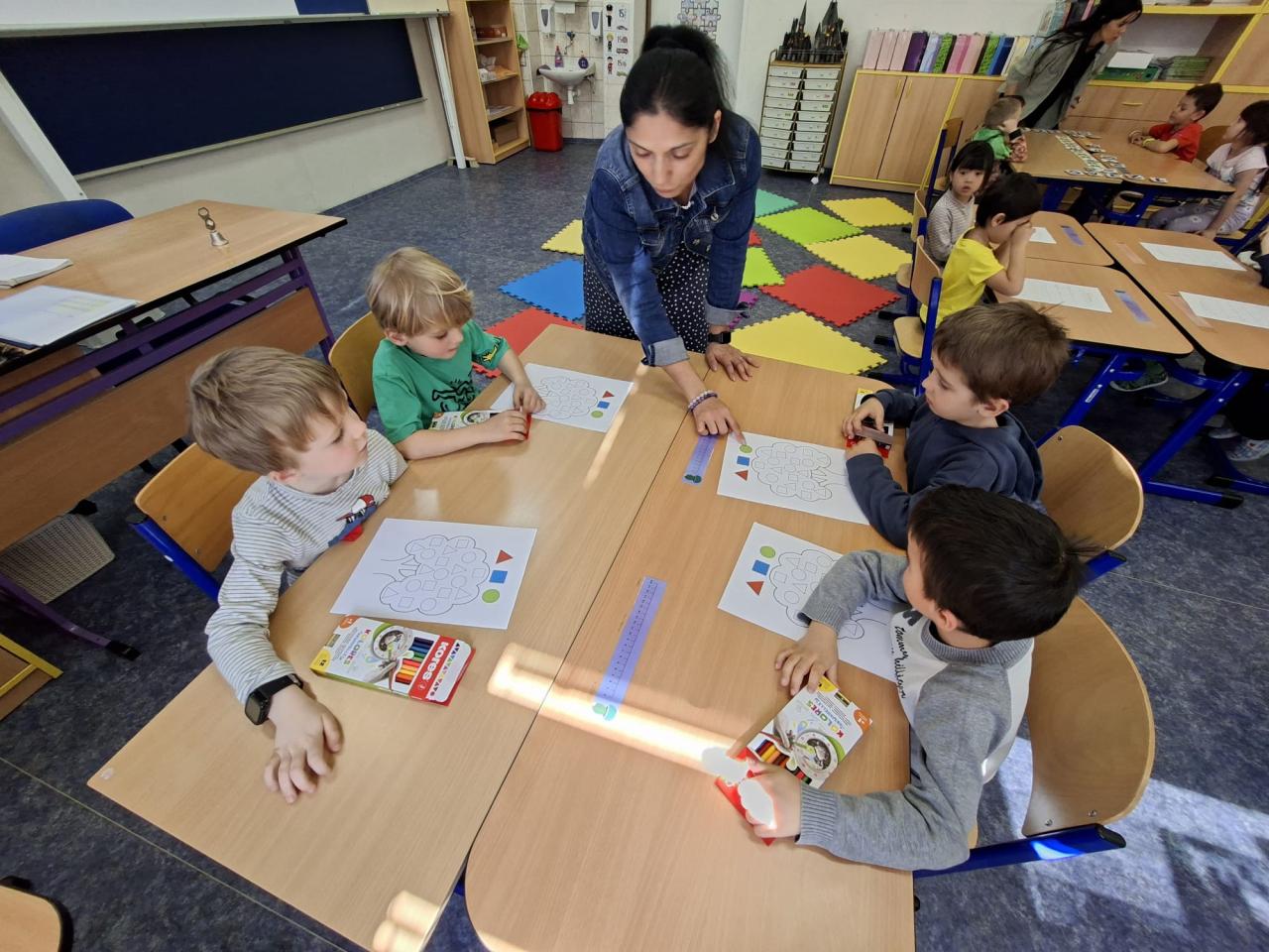 První ze čtyř dnů předškoláků ve škole se nesl v duchu objevování matematiky. Do třídy dorazilo celkem 24 dětí, které se hned zapojily do pestrého programu. Společně s paní učitelkou Martinou Babinovou začali seznamovacím kroužkem, kde se děti poznávaly a sdílely své dojmy.